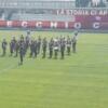 Ora autorità e Fanfara si spostano in campo, dove avrà luogo il prosieguo della cerimonia. Continuano le marce eseguite dalla banda militare sul prato del Filadelfia. La squadra fa il suo ingresso in campo in questo momento, accompagnata dalle note suonate dalla Brigata Taurinense. Stefano Venneri, in campo con gli uomini di Mihajlovic, ricorda il Grande Torino e annuncia: “Siamo tornati a Casa!“. Ora risuona l’Inno del Toro all’interno dell’impianto, cantato da Valerio Liboni. Sono lunghissime le code all’esterno dell’impianto: tanti i tifosi desiderosi di entrare nel rinato Filadelfia. Nel frattempo in campo Stefano Venneri e don Robella ricordano don Aldo. Commosso il ricordo del cappellano granata: “Prima, mentre benedivo l’impianto ero sicuro che lui fosse lì con me, gli ho chiesto di darmi la forza. La sua presenza è stata fondamentale per permettere al Fila di risorgere”. Termina qui la cerimonia ufficiale, ma oggi le porte del Fila resteranno aperte sino alle 22: il popolo granata torna a casa!