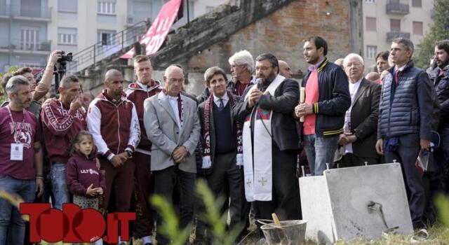 11.43 Parla ora Domenico Beccaria: “Questa pietra la mettono i tifosi. Questa è una prima pietra diversa da tutte le altre. Diamo atto a Comune e Regione, ma il cuore ce l’abbiamo messo noi. In questo campo c’era un uomo che con la tromba dava la carica, ce n’era un altro che si rimboccava le maniche portando a successi che sembravano impossibili. Oggi la tromba di Bolmida torna davvero a suonare! Ogni tifoso del Toro si rimbocca le maniche, perché lo ricostruiamo. Oggi torniamo a casa!“