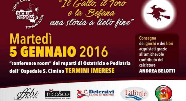 Il lavoro e la fatica del Direttivo del Toro Club Sicilia Granata “Tonino Asta” e il grande cuore e la generosità dimostrati dal calciatore Andrea “gallo” Belotti sono stati fondamentali affinché, alla vigilia dell’Epifania, quando una befana a chiare tinte granata, a cavallo della sua scopa, prendesse forma tra le corsie del Reparto di Pediatria dell’Ospedale Salvatore Cimino di Termini Imerese (Pa).