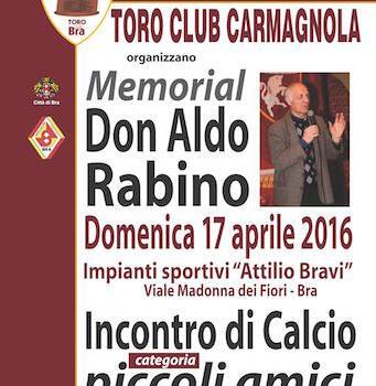 Il Torino Club Carmagnola organizza il primo torneo di calcio giovanile (quest’anno riservato alla categoria picoli amici 2008) in memoria di Don Aldo Rabino; Padre salesiano, guida spirituale del Torino per numerosi anni e fondatore dell’associazione “OASI”.