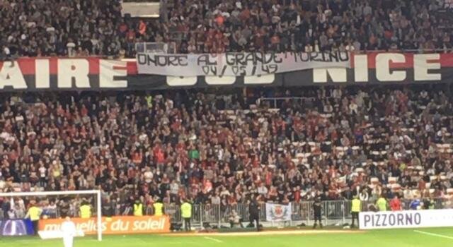 Basta uno striscione, un gesto, per ricordare chi non c’è più. E il Grande Torino, che ha fatto la storia del calcio, è famoso in tutto il mondo. In Francia, per esempio, ha lasciato abbastanza sorpresi il gesto dei tifosi del Nizza, che con uno striscione comparso ieri durante la gara contro il Saint Etienne (vinta per 2-0) ha voluto ricordare Mazzola e compagni, vittime di quel tragico incidente aereo del 4 maggio 1949. “Onore al Grande Torino” recita lo striscione.