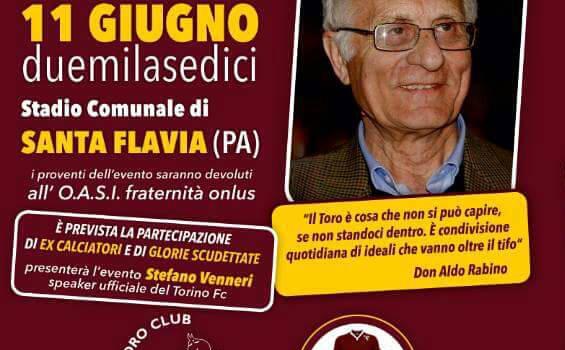 Animati dalla ormai nota passione e forti del legame che li unisce indissolubilmente al compianto Don Aldo, il Toro Club Sicilia Granata ha organizzato un evento al quale parteciperanno molte ex leggende del Toro. Grazie al consenso della famiglia di Don Aldo, il Toro Club isolano ha organizzato per il pomeriggio di sabato il “1° Memorial Don Aldo Rabino”. A disputarlo saranno due splendide squadre: “I Campioni per Don Aldo” e “Sicilia Granata”. Della prima faranno parte molti volti noti all’intera tifoseria granata: Morello, Benedetti, Peccarisi, Balestri, Bava, Asta, Parisi, Franceschini e Walter Schachner, i figli del Filadelfia, Di Maggio e Torregrossa ed il campione d’Italia con la Beretti granata Loreto Lo Bosco. Ma le sorprese non sono finite qui, poiché in panchina ci saranno Eraldo Pecci e Rosario Rampanti. Sarà quindi una delle manifestazioni più importanti del mondo Toro, la quale sarà presentata dallo speaker ufficiale del Torino FC Stefano Venneri, un’altra presenza importante che non farà altro che arricchire una giornata già molto speciale. A questa manifestazione dedicata interamente a Don Aldo Rabino, sarà presenta anche sua sorella, la quale sarà d’ausilio per ricordare, in un giorno così speciale, la presenza di suo fratello. In occasione di questo Memorial, sarà premiato con il “Siciliano granata – anno 2016” il Dott. Ferrauto per l’importante contributo prestato alla Fondazione Stadio Filadelfia. Ma oltre ai riconoscimenti e alle note presenze, l’elemento che più identifica questo splendido gruppo è l’umanità: verrà attivata una gara di solidarietà – sorteggio di beni tra i tesserati – ed il ricavato verrà destinato all’associazione Oasi. L’evento gode del patrocinio del Comune di Santa Flavia e del contributo della Intrauma.