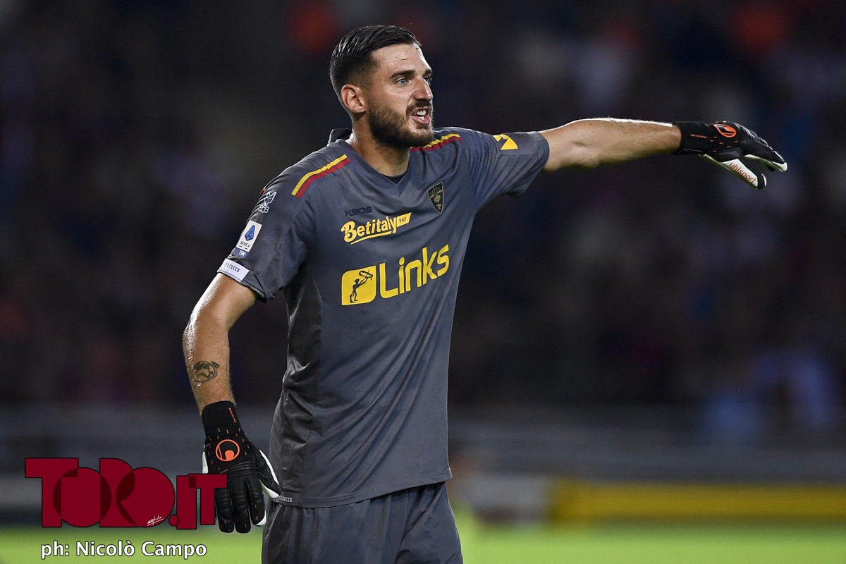 Wladimiro Falcone of US Lecce gestures during the Serie A football match between Torino FC and US Lecce.