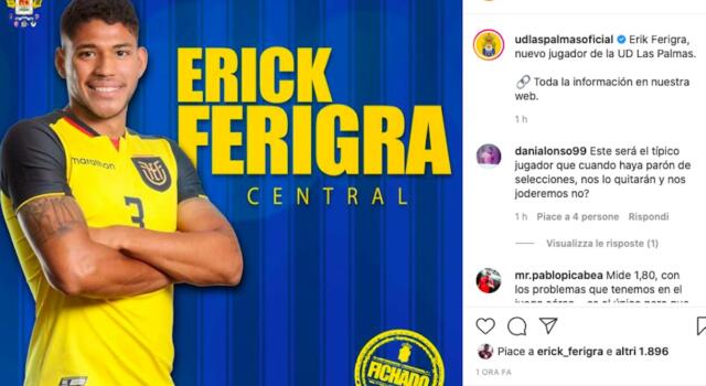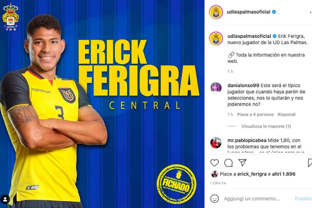 Ora è ufficiale: Erick Ferigra è un nuovo giocatore del Las Palmas. L’annuncio è stato dato dal club spagnolo. Il difensore ha lasciato il Torino a parametro zero, dopo una stagione passata ai margini della Prima squadra condita con qualche presenza nel campionato Primavera. Da tempo il centrale ecuadoriano era seguito dal Las Palmas, che milita nella Segunda Division (la serie B del campionato iberico), ora sono arrivate le firme sul contratto e l’annuncio.