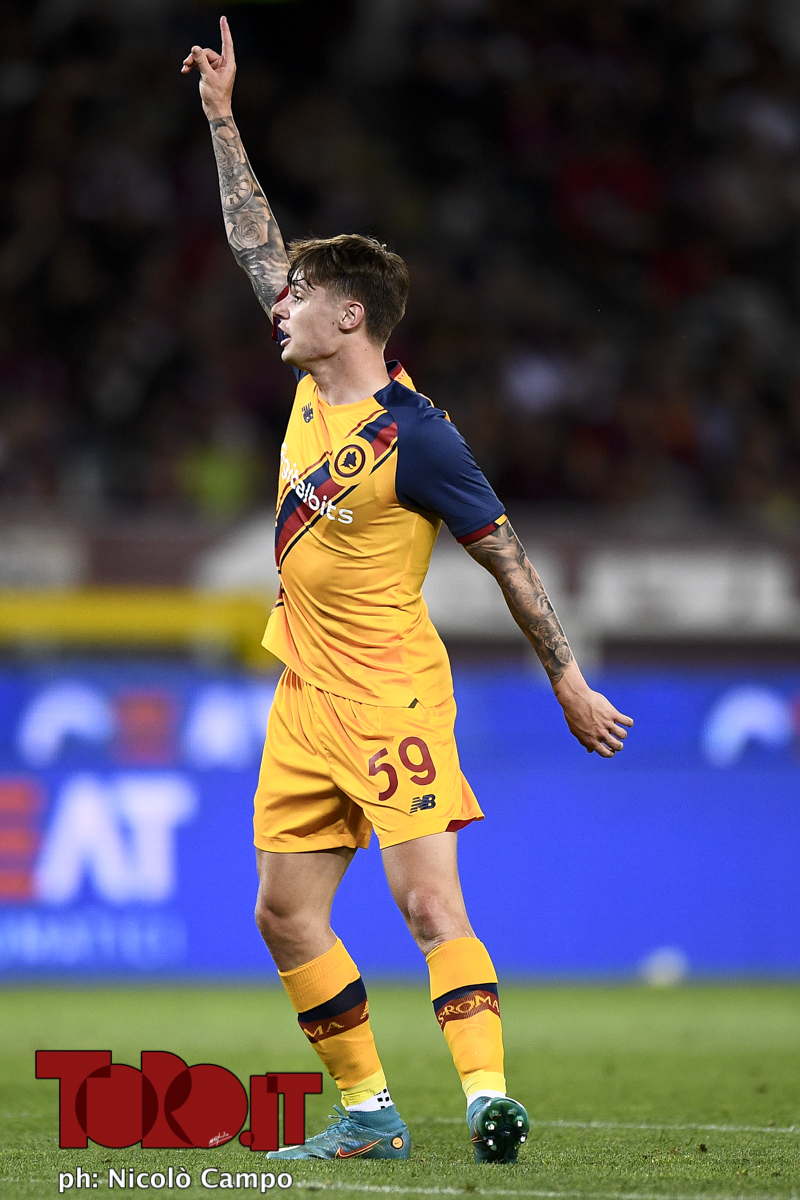 Nicola Zalewski of AS Roma gestures during the Serie A football match between Torino FC and AS Roma. AS Roma won 3-0 over Torino FC.
