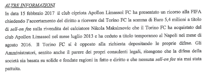 Una vittoria, per il Torino, che fa il paio con un altra battaglia legale portata avanti e conclusasi sempre quest’anno, che ha visto anche in questo caso un esito favorevole ai granata. La contesa riguardava il club piemontese e l’Apollon Limassol, squadra che deteneva il cartellino del giocatore nel 2013, quando venne acquistato da Cairo. La cessione al Napoli, secondo il club cipriota, avrebbe dovuto prevedere, come è avvenuto per Ogbonna, un premio di valorizzazione, quantificato in ben 5,4 milioni di euro. La difesa dei granata, però, è stata efficace: la FIFA, come riportato nel bilancio 2016, ha infatti disposto che nessuna cifra era stata pattuita, e quindi da corrispondere. Il Toro, nel frattempo, aspetta il pagamento del riscatto da parte del Napoli: 20 milioni di euro, che dovranno arrivare a partire da questo mese. DopodichĂ©, il capitolo sarĂ veramente chiuso. Definitivamente.