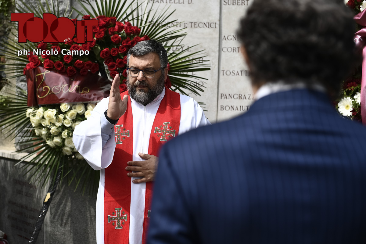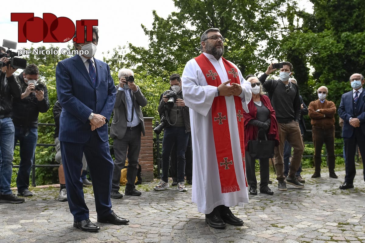 Don Riccardo Robella pays tribute to the Grande Torino football team at the monument dedicated to commemorate the tragedy. On May 4, 1949, an airplane carrying the Grande Torino football team from Lisbon to Turin crashed into a wall of the Basilica of Superga over a hill near Turin killing members of the team. The 71th Annual commemoration of the Superga tragedy is celebrated respecting restrictions imposed by Italian government due COVID-19 coronavirus crisis.