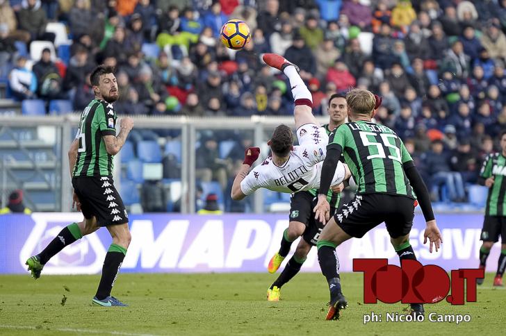 CAMPO, 8.1.17, Reggio nell’Emilia, Mapei Stadium, 19.a giornata di Serie A, SASSUOLO-TORINO, nella foto: la rovesciata di Andrea Belotti
