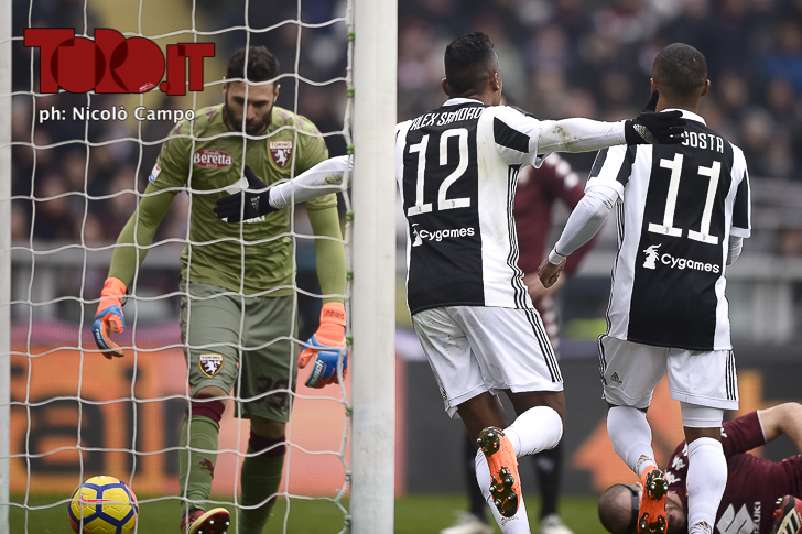 CAMPO, 18.2.18, Torino, stadio Olimpico Grande Torino, Serie A, TORINO-JUVENTUS, nella foto: Alex Sandro esulta dopo gol 0-1