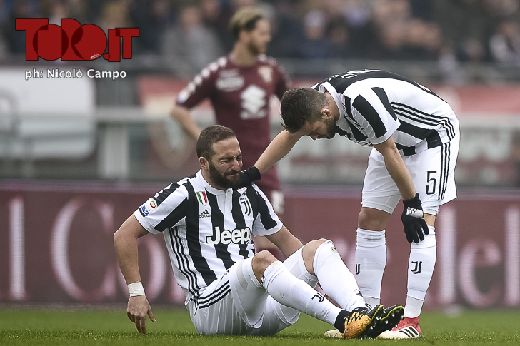 CAMPO, 18.2.18, Torino, stadio Olimpico Grande Torino, Serie A, TORINO-JUVENTUS, nella foto: infortunio Gonzalo Higuain