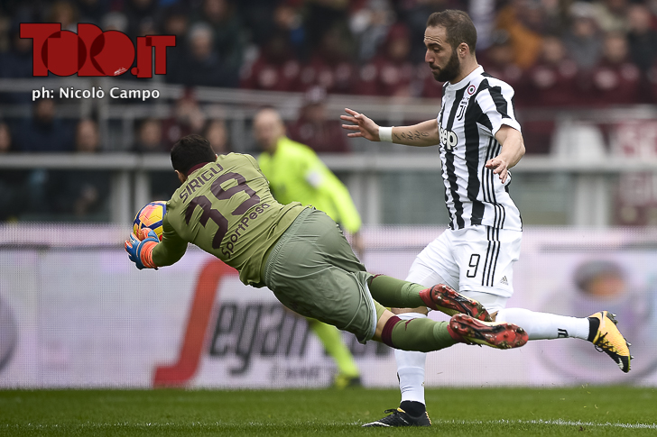 CAMPO, 18.2.18, Torino, stadio Olimpico Grande Torino, Serie A, TORINO-JUVENTUS, nella foto: Salvatore Sirigu, Gonzalo Higuain