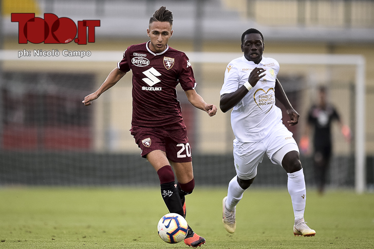 Simone Edera of Torino FC in action during the friendly football match between Torino FC and OGC Nice.