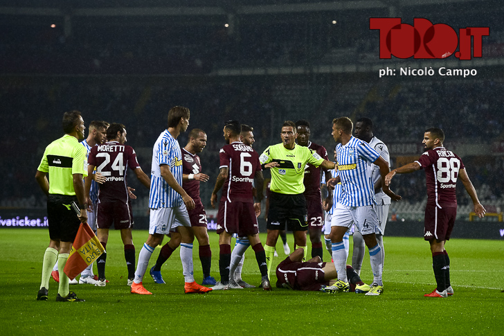 Al Torino è bastato un gol di Nicolas Nkoulou, a inizio secondo tempo, per battere la Spal. Una partita resa piĂą complicata dalla forte pioggia che si è abbattuta sul capoluogo piemontese e che, al 18′, ha costretto l’arbitro Pasqua a sospendere la partita per circa un’ora. Alla ripresa del gioco i granata hanno trovato la vittoria grazie al colpo di testa perfetto del difensore camerunense su azione d’angolo. Ecco la fotogallery di Torino-Spal realizzata da Nicolò Campo.