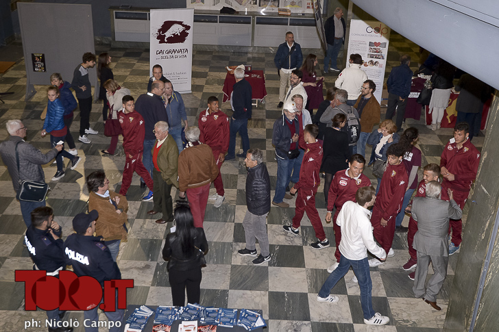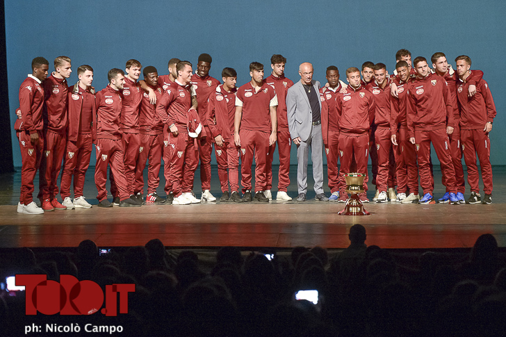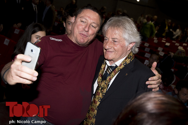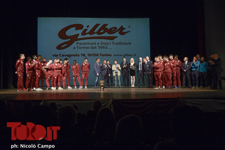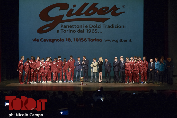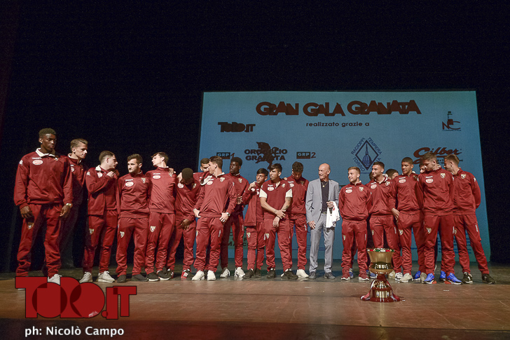 È stata una grandissima festa. Anche quest’anno il Gran Gala Granata, la serata organizzata da Toro.it e EnneCi Communication, ha chiuso tra gli applausi delle centinaia di persone accorse al Teatro Nuovo per vedere gli idoli del Torino, tra passato, presente e futuro. Perché, in effetti, c’era un mix di tutto. C’erano Bonesso e Dossena, c’era Antonino Asta, c’era Natalino Fossati, ma c’era anche Paolino Pulici, che, acclamato dalla folla, ha alzato la Coppa Italia Primavera, portata a teatro insieme a tutta la squadra e ai dirigenti Benedetti, Bava e all’allenatore Coppitelli. Una serata da brividi ed emozioni forti, come dimostrano gli applausi sinceri dedicati a Mondonico e a Tomà e Carla Maroso, recentemente scomparsi e ricordati da un bellissimo intervento di Franco Ossola. Lacrime, gioia, emozioni, festa: Jimmy Ghione ha condotto una serata particolarmente variegata, arricchita anche dalla presenza dei giornalisti Paolo Aghemo, Stefano Tallia, Beppe Gandolfo, Andrea Pavan e dallo scrittore Giuseppe Culicchia, oltre alla bella presenza di Stefania Girardi e, in chiusura, al momento musicale con Valerio Liboni. C’era davvero tanto Toro, ieri, al Teatro Nuovo. Arrivederci al prossimo anno, con tante altre sorprese! Ecco la fotogallery del Gran Gala Granata, firmata da Nicolò Campo, ma i contenuti multimediali non finiscono certamente qui…