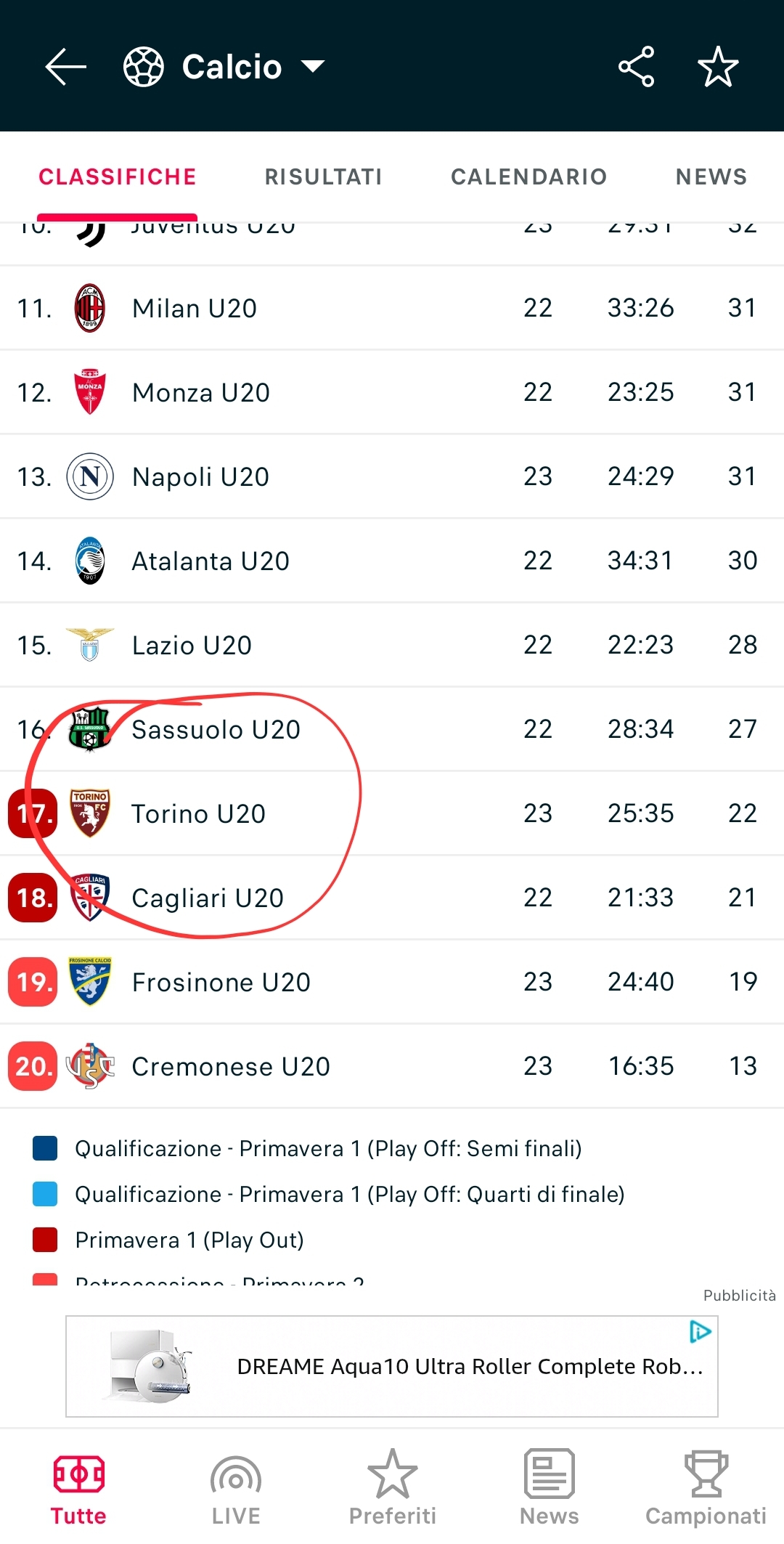 46′ Finisce qui il primo tempo. Non male il Toro, ma la freddezza di Braschi e le parate di Fei hanno fatto la differenza in questa prima frazione di gioco.