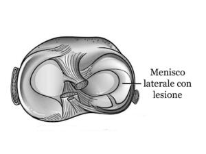 Il più colpito è in genere il corno posteriore del menisco mediale. La lesione può manifestarsi in modo acuto con dolore localizzato, impotenza funzionale spesso transitoria, versamento e, nei casi più complessi, con comparsa di blocco articolare ovvero impossibilità di estensione del ginocchio oltre un certo grado. Per la diagnosi oltre alla positività di alcuni test clinici (Apley, Mc Murray,..) è indicata la risonanza magnetica.