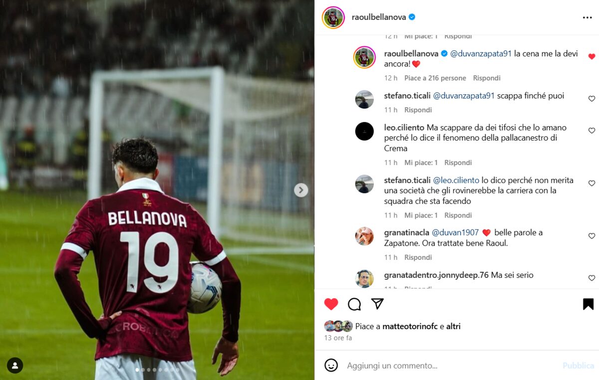 Tra i commenti oltre a quelli dei tifosi in parte polemici verso la società o ricambianti di affetto verso il giocatore, non sono mancati quelli degli addetti ai lavori: dei suoi ormai ex compagni di squadra. Da Alberto Paleari (“Grande Raoul! In bocca al lupo! Sarai sempre il nostro primo ucciso nella notte di lupus”), ai messaggi di in bocca al lupo e i cuori lanciati da due personaggi illustri come Alessandro Buongiorno, che ha anch’esso ha fatto le valigie per accasarsi a Napoli, all’attuale capitano granata Duvan Zapata.