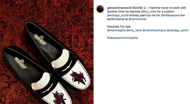 Scarpe personalizzate col Toro in bella mostra: così Willie, in gara al Festival, ha portato la sua squadra del cuore all’Ariston