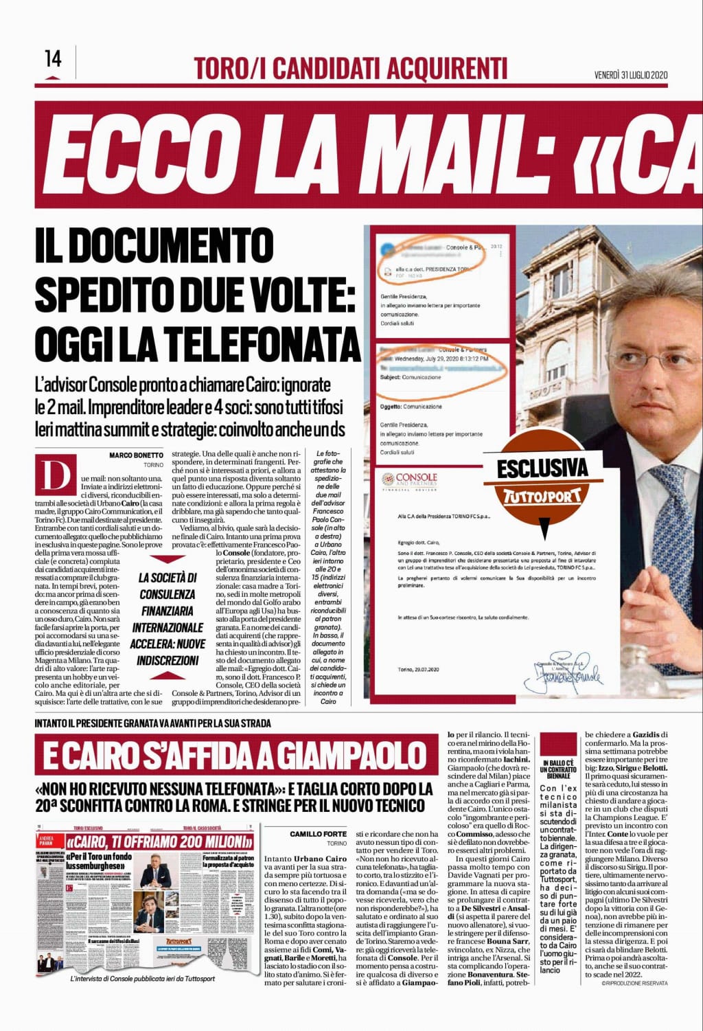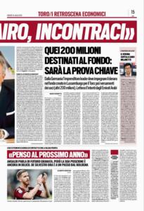 Il presidente Cairo deve capire che non può disporre il Toro come di una sua azienda. Legalmente è certo che lui sia il proprietario del Torino FC, ma nel calcio, a maggior ragione quando si parla di Toro, la squadra è della gente. E se arrivano personaggi facoltosi (non sto dicendo che questi del comitato Taurinorum lo siano perché ancora non sappiamo chi sono), il presidente deve passare la mano. Come fece Giovannone per Cairo, lui è tenuto a farlo per eventuali compratori con maggior disponibilità economica. E mi auguro che abbia il buon gusto di non sparare un prezzo da estorsore.