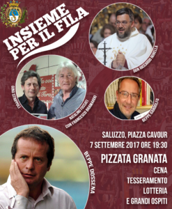 Il Toro Club Saluzzo organizza, per giovedì 7 settembre , la tradizionale Pizzata Granata, appuntamento gastronomico-sportivo che si svolge ormai da alcuni anni sotto l’ala di ferro di piazza Cavour. Anche quest’anno, oltre alla cena e al tesseramento dei soci per la stagione 2017/18, la manifestazione avrĂ le caratteristiche di un vero e proprio evento culturale ,come è nel recente stile del Club e del suo Consiglio Direttivo.