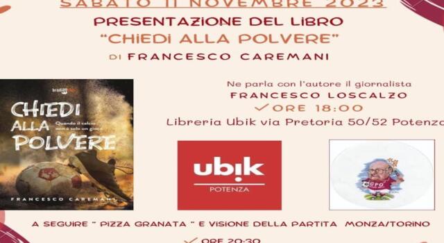 Nella giornata di domani, sabato 11 novembre 2023, presso la Libreria Ubik di Potenza (via Pretoria 50/52) si terrà la presentazione del libro “Chiedi alla polvere” di Francesco Caremani, a partire dalle ore 18:00. A seguire pizza e partita Monza-Torino presso La Fattoria Sotto Il Cielo. Di seguito la locandina con tutte le informazioni.