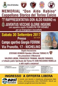 Non si spegne il ricordo di Don Aldo Rabino. L’ex cappellano granata verrĂ  ricordato sabato 30 settembre a Nichelino, nel Memorial a lui dedicato. Il programma della giornata, che avrĂ  inizio alle ore 14.30, prevede un triangolare tra la Rappresentativa Don Aldo Rabino, le Vecchie Glorie della Juventus e il Filadelfia for Disable che si disputerĂ  sul campo “Giorgio Ferrini” in via Prunotto 17. PresenterĂ  l’evento lo speaker granata Stefano Venneri, mentre molti saranno gli ospiti d’eccezione: da Valerio Liboni a Francesco Trimani, passando per Mauro Tarasco e per l’attuale padre spirituale del Torino, Don Riccardo Robella. Ma non si escludono le sorprese. Di seguito la locandina dell’evento.