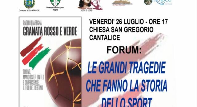Il tema dell’evento saranno le tragedie che hanno fatto la storia del calcio. Per l’occasione Paolo Quaregna presenterà il suo libro “Granata Rosso e Verde”. Torino Manchester United e Chapecoense, il filo del destino”. La “Saletta dei Ricordi” di Cantalice è una mostra-museo permanente, ideata e curata da Antonio Tavani come tributo di affetto alle vittime del disastro aereo del Monte Terminillo, avvenuto nel 1955, in cui si celebra anche il ricordo della tragedia di Superga in un cui è scomparso il Grande Torino. Ci saranno anche il regista Mimmo Calopresti, noto tifoso del Toro e l’Onorevole Fabio Porta, Deputato alla Camera eletto in Brasile.