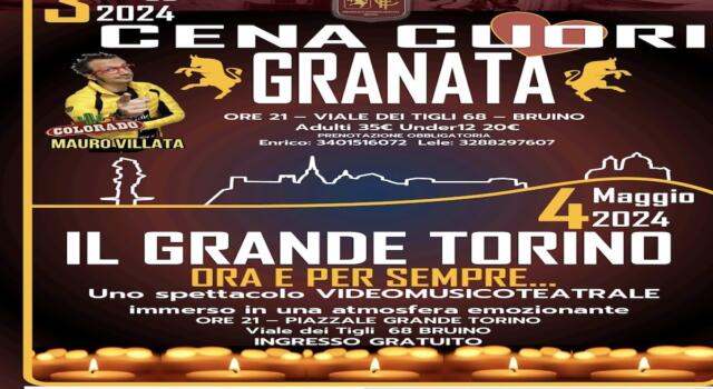 Toro Club Bruino che compie 16 anni. Il 3 maggio, dalle ore 21, ci sarĂ una cena di festa. Presenti ex giocatori, ospiti illustri, club, tifosi e Mauro Villata di Colorado. Il 4 maggio poi, il Grande Torino verrĂ ricordato in modo speciale. SarĂ infatti trasmesso uno spettacolo videomusicale, unico nel suo genere, immerso in un’atmosfera emozionante. Nella locandina tutte le info.