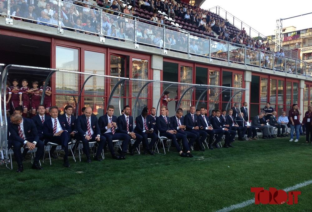 Chiamati uno ad uno da Strippoli e Ghione, fanno adesso il loro ingresso in campo i ragazzi del Toro di Mihajlovic. Appalusi soprattutto per Moretti mentre Zappacosta e Carlao non possono essere presenti a causa dell’infortunio. E l’ovazione, come era prevedibile, è tutta per Belotti, uomo simbolo di questa squadra e beniamino dei tifosi. Dopo i giocatori, entrano anche Comi, Petrachi e ovviamente Sinisa Mihajlovic.