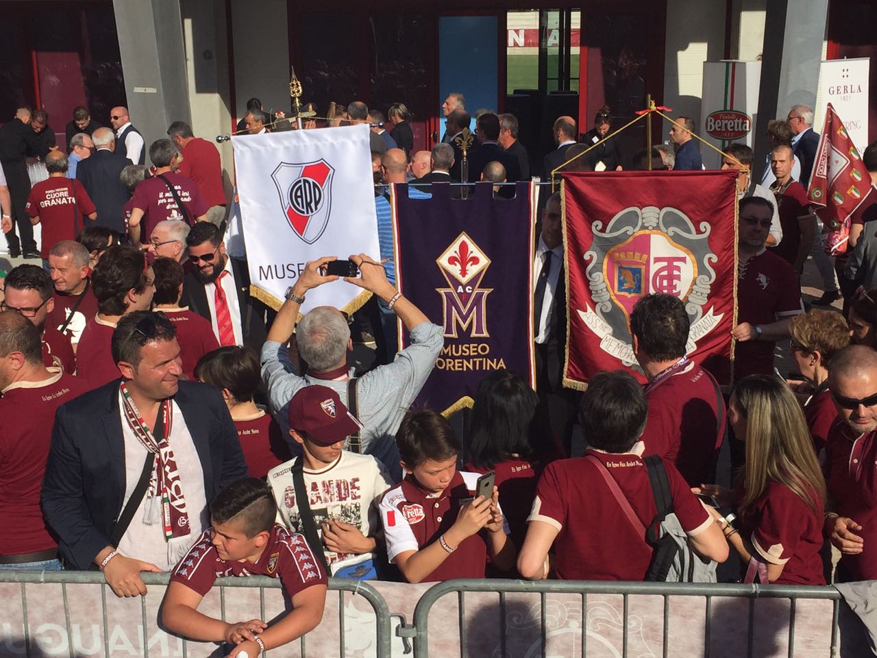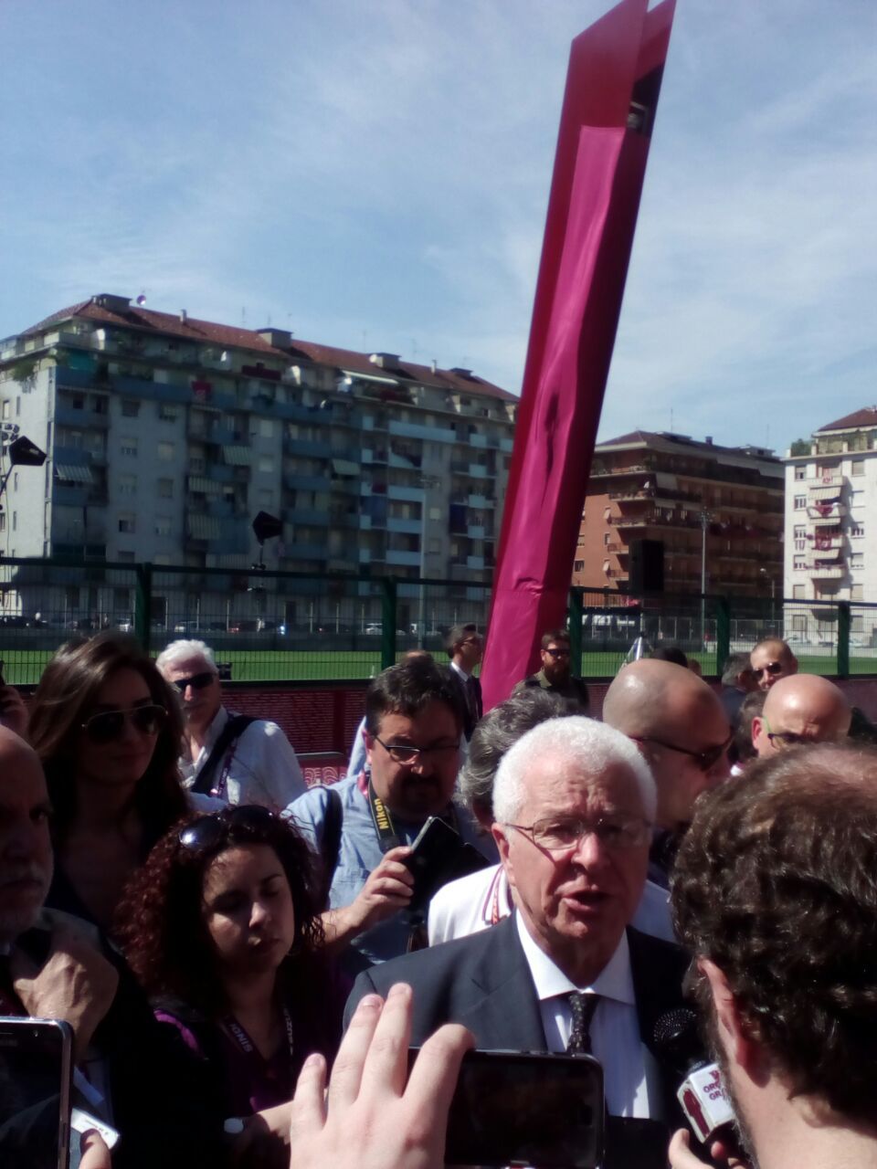 Arrivato in questo momento anche il Presidente del Toro, Urbano Cairo. Inizia in questo momento la cerimonia dell’inaugurazione dei pennoni dedicati al Grande Torino. Dopo la cerimonia dei pennoni, il Presidente Cairo e la sorella di Don Aldo Rabino hanno scoperto la targa dedicata al cappellano granata.