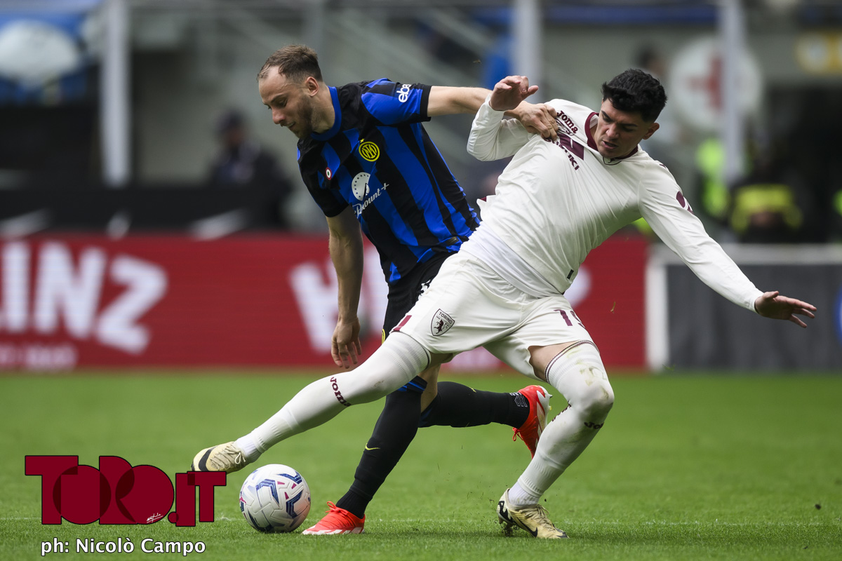 ZAPATA 6.5: il più vicino a fare male ai campioni d’Italia in festa, chiamando prima Sommer alla parata al 15′ e poi sfiorando con una bella torsione il vantaggio tre minuti dopo. La sua sostituzione sa quasi di resa (st 18′ SANABRIA 5.5: entra quando il Toro, in inferiorità, ha quasi mollato la presa)