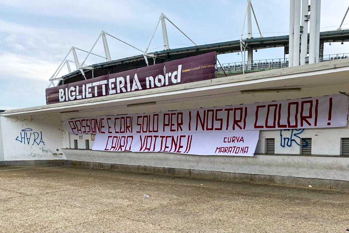 Non certo il clima piĂą idilliaco del cominciare una nuova stagione. Gli strascichi di un precampionato che ha generato malumori nella piazza granata, si riversano anche ai minuti precedenti della sfida che questa sera metterĂ  di fronte il Torino di Ivan Juric al Palermo neopromosso in Serie B, in occasione del primo turno di Coppa Italia. All’altezza della biglietteria dello stadio Olimpico-Grande Torino, una frangia della tifoseria granata, ci ha tenuto ad inviare un messaggio ai piani alti della societĂ . Lo striscione recita così “Passione e cori solo per i nostri colori! Cairo Vattene !!” a firma della Curva Maratona. Il cuore pulsante del tifo granata riflette con queste parole il malcontento del popolo granata per la gestione del mercato e piĂą in generale quella societaria.