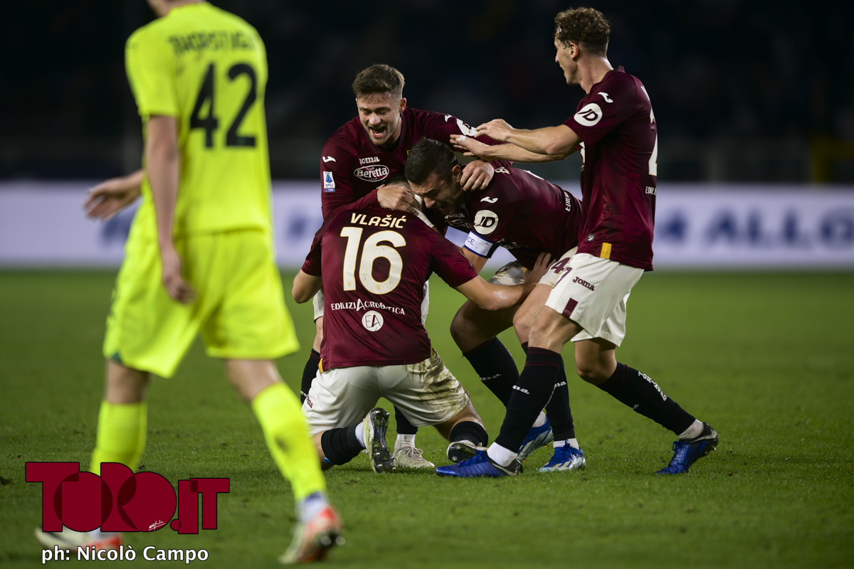 Nikola Vlasic of Torino FC celebrates with teammates after scoring a goal during the Serie A football match between Torino FC and US Sassuolo.
