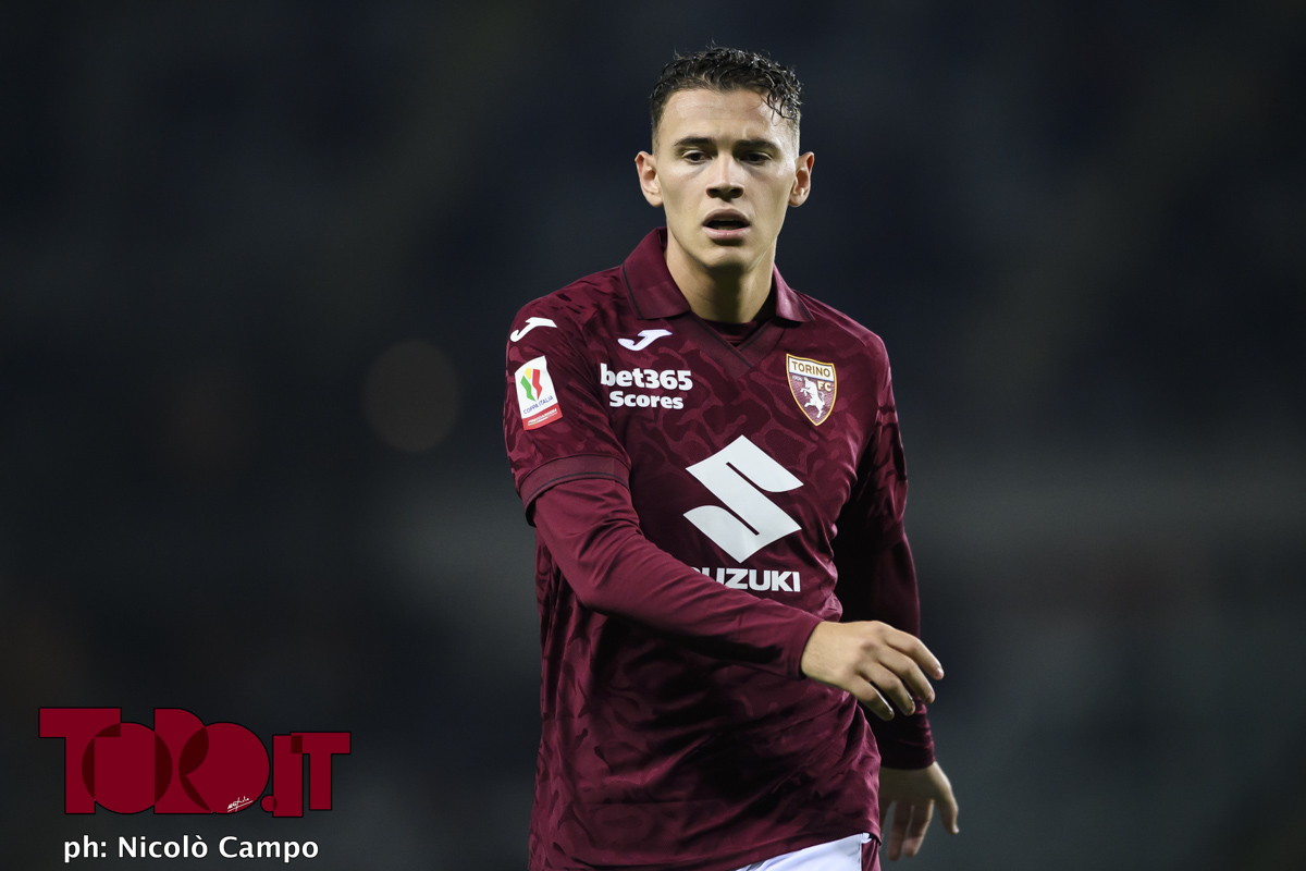 Kristjan Asllani of Torino FC looks on during the Coppa Italia football match between Torino FC and Pisa SC.