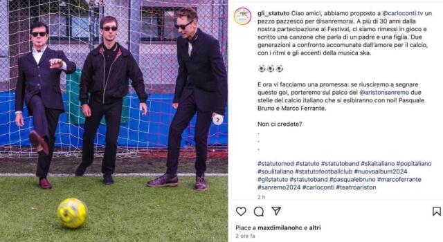 Ormai molto spesso la musica e il calcio si fondono sul palco di Sanremo. Dalla presenza di Ibrahimovic ormai tre anni fa a quella di Ronaldo ai tempi della Juve, passando per gli sketch di Amadeus a tema Inter. Ora, il prossimo club ad apparire all’Ariston in occasione del piĂą importante festival della musica italiana potrebbe essere proprio il Torino. Vi chiederete com’è possibile, e la risposta l’hanno giĂ data gli Statuto. Il gruppo pop, i cui membri sono apertamente tifosi del Toro, ha comunicato sul proprio profilo Instagram di aver proposto a Carlo Conti una canzone che tratta di calcio e famiglia per poter partecipare al Festival. Il gruppo torinese, in particolare, ha promesso che qualora dovesse riuscire a rientrare tra i Big in gara, farebbe esibire Pasquale Bruno e Marco Ferrante una delle cinque sere, portandoli direttamente sul palco dell’Ariston.