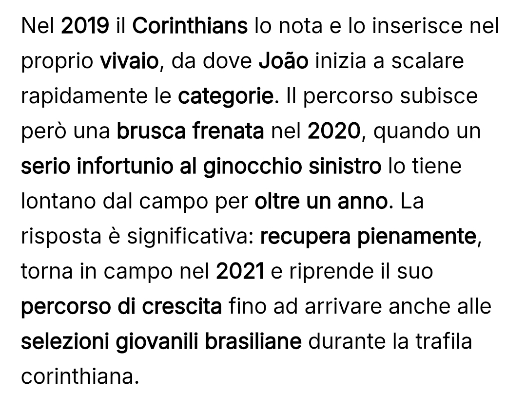 Joao Pedro Tchoca è nato il 31 dicembre 2003 a Sete Lagos in Brasile, è un difensore classe 2003, alto 192 cm e di piede destro. Il calciatore è stato individuato da Petrachi e dai suoi collaboratori come un papabile rinforzo per la squadra di Baroni, che necessita di un ulteriore difensore per poter continuare a giocare con una difesa a 3, oltre che per porre rimedio alle enormi lacune difensive.