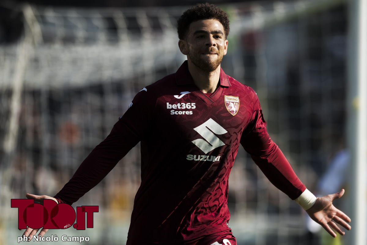 Che Adams of Torino FC celebrates after scoring a goal during the Serie A football match between Torino FC and US Lecce.