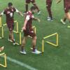 18.30 La squadra è in campo, sta lavorando con il pallone.