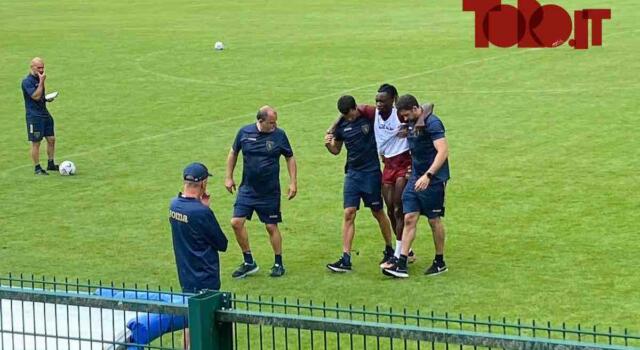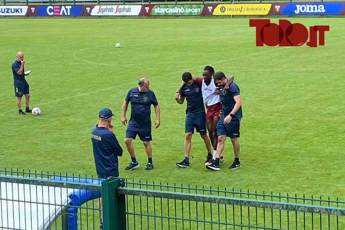 Durante la partitella, Yann Karamoh ha ricevuto un colpo alla gamba: ha abbandonato anzitempo con il ghiaccio sul polpaccio sinistro
