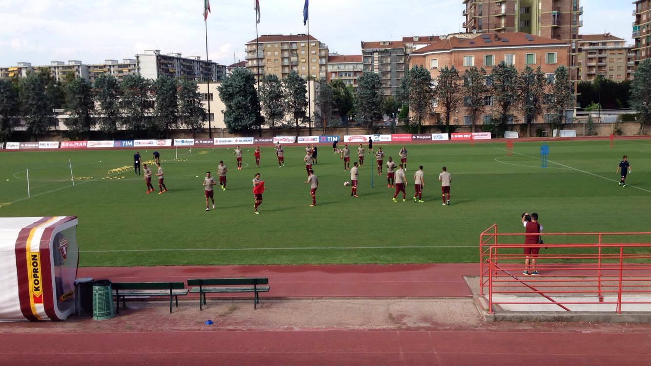 La squadra è entrata in campo in leggero ritardo, rispetto a quanto previsto: il campo è stato irrigato fino a ora. Solito torello per i giocatori in mezzo al campo, al quale seguirà il classico giro di corsa intorno al terreno di gioco per scaldare i muscoli. La sessione odierna prevede, come di consueto, un lavoro misto tra tattica e pallone. È presente anche il direttore sportivo Petrachi.