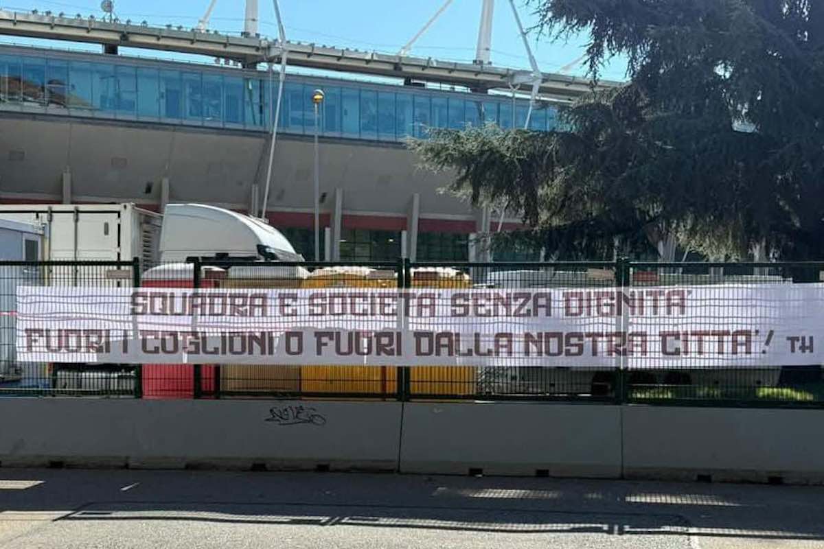 Non si placa la protesta della tifoseria dopo il 5-0 di San Siro: a poche ore dal match di oggi ecco lo striscione affisso fuori dallo stadio
