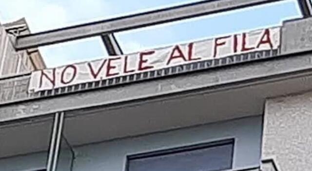 I residenti delle vie intorno al Filadelfia hanno esposto degli striscioni sui balconi contro le vele che circondano l’impianto