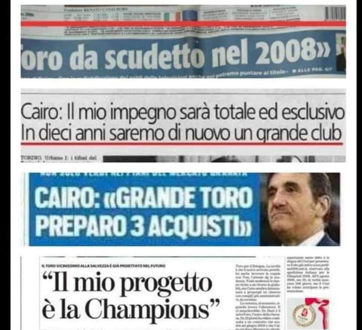 Ringraziamo il presiniente parolaio che in questi 15 anni ha promesso :derby combattuti come ai tempi di Pulici, scudetto, partecipazione alla Champions.