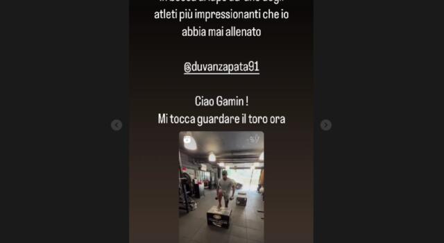 Il ragazzo ha poi pubblicato anche una storia, augurando buona fortuna al colombiano: “In bocca al lupo a uno degli atleti più impressionanti che io abbia mai allenato. Ciao Gamin! Mi tocca guardare il Toro ora”.